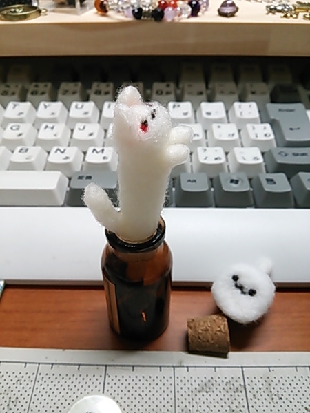 ちまちま工作してたら机の上に白い何かがふよふよ漂ってて。