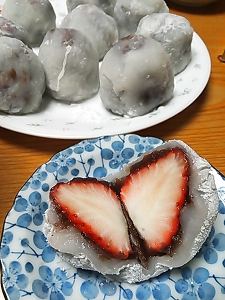 母上が唐突に「いちご大福作る」と言い出したので一緒に作ることに。